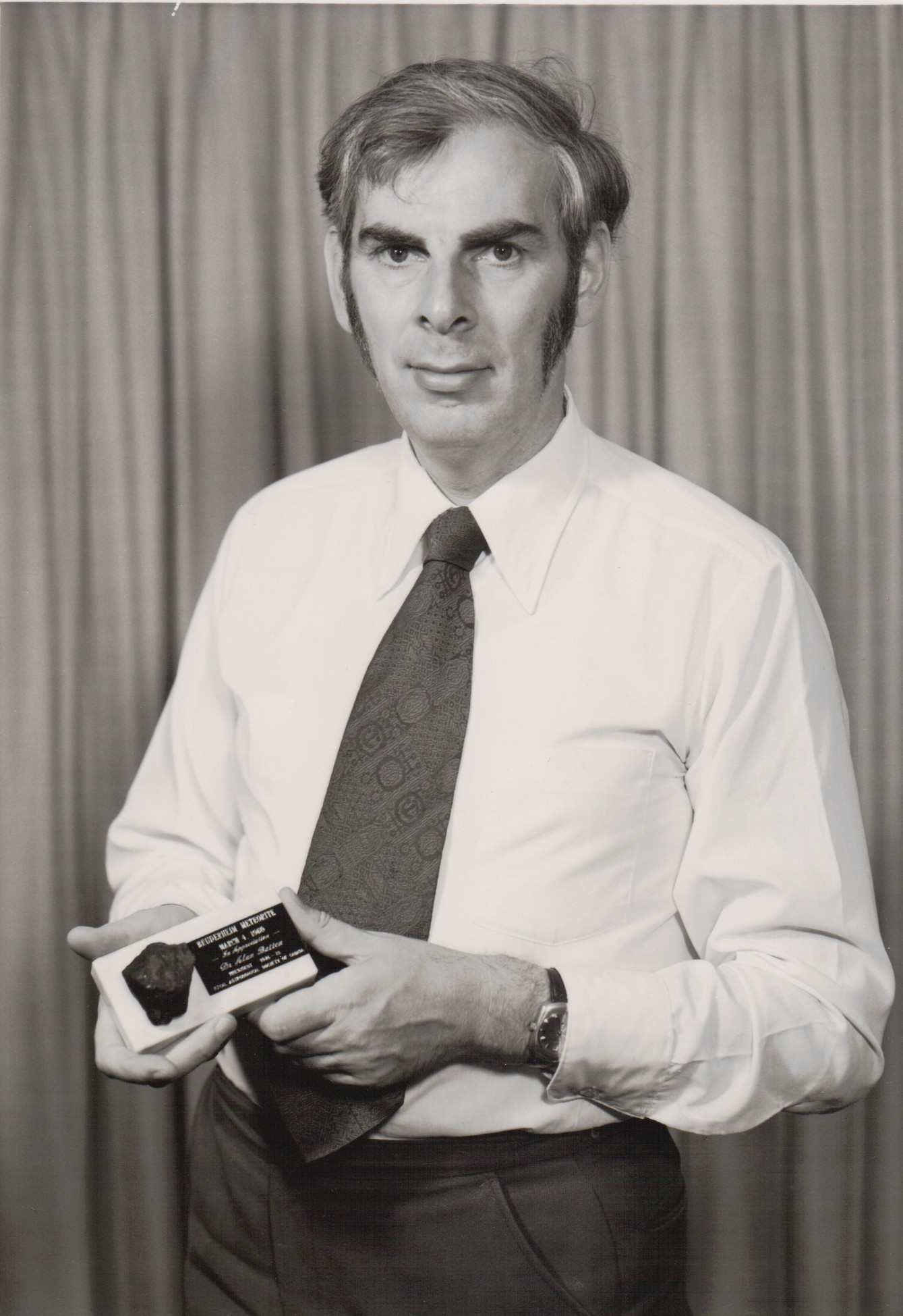 This is a mounted portion of the Bruderheim meteorite presented to him by the Edmonton Centre in appreciation of his service to the Society. (ref: Looking Up, p.92)