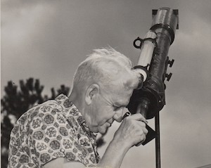 DANIEL C. BAWTENHEIMER (1900-1981) received the Service Award in 1965, the first member of Windsor Centre to be recognized in this way. As a Boy Scout he had his first look through a small telescope at some of the planets and the Milky Way. His interest in astronomy stayed with him throughout his life, though he earned his living as a furniture salesman. Every June for many years, he and Mrs. Bawtenheimer were hosts at their "Poplar Lodge" home for an Observation Evening when members could enjoy viewing the heavens through his 25-cm reflector. He was the first Secretary of the Windsor Centre, and subsequently served as Vice-President, President (in 1948 and again in 1955) and Librarian. He conducted Students' Nights and frequently spoke at Centre meetings about current events.