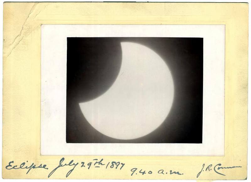 Solar eclipse photo, 1897 July 29th 9:40 a.m. Photo by J.R. Connon.