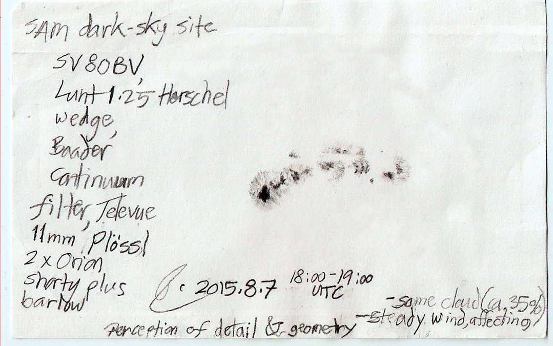 Alex writes: We were fortunate to have marvellous transparency that summer's night. Seeing was poor, and magnification had to be kept down low. But you take what you get.