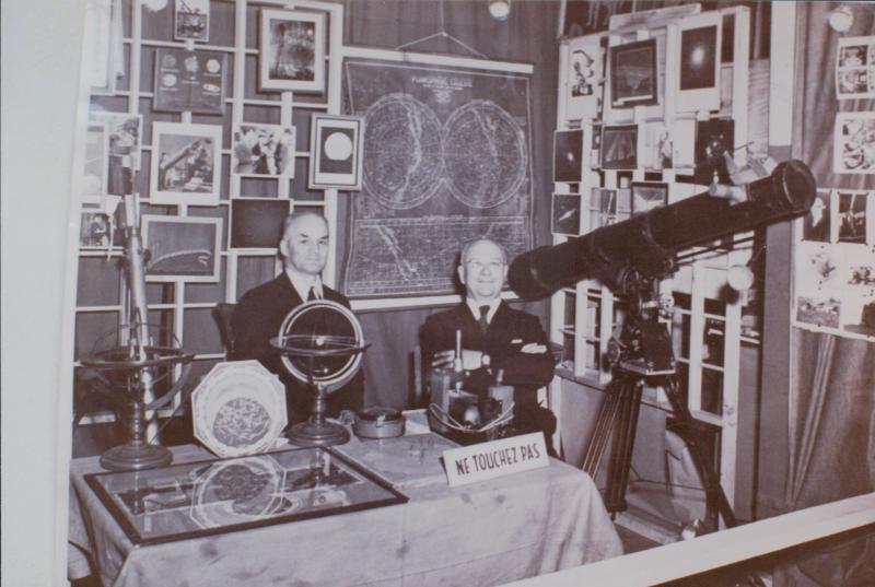 Kiosque astronomique de M.J. Edgar Guimont et de son assistant M. Jean Naubert, lors d'une exposition en la salle paroissiale de l'Immaculée Conception, Montréal.
