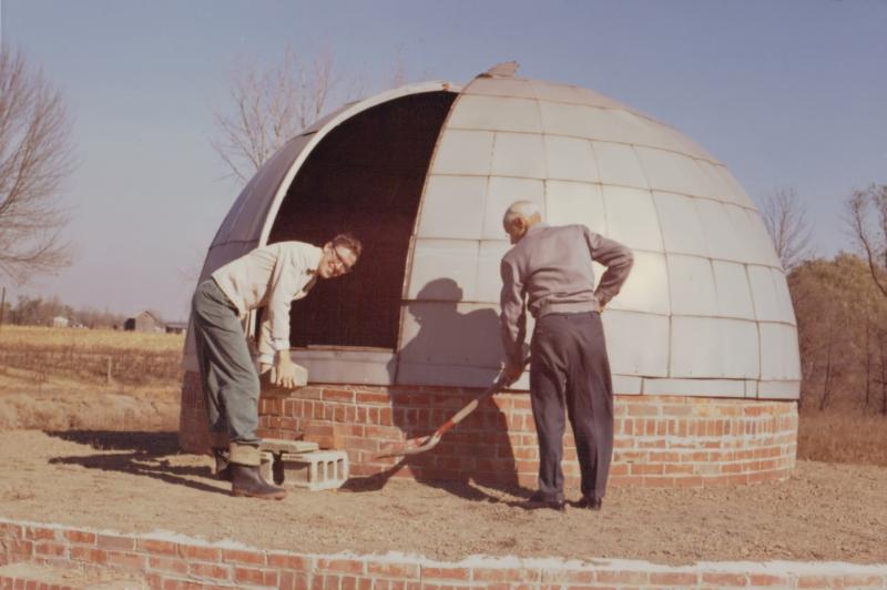 (l to r) ? and Gus Nyburg, at the Maidstone Observatory, ca. 1963.