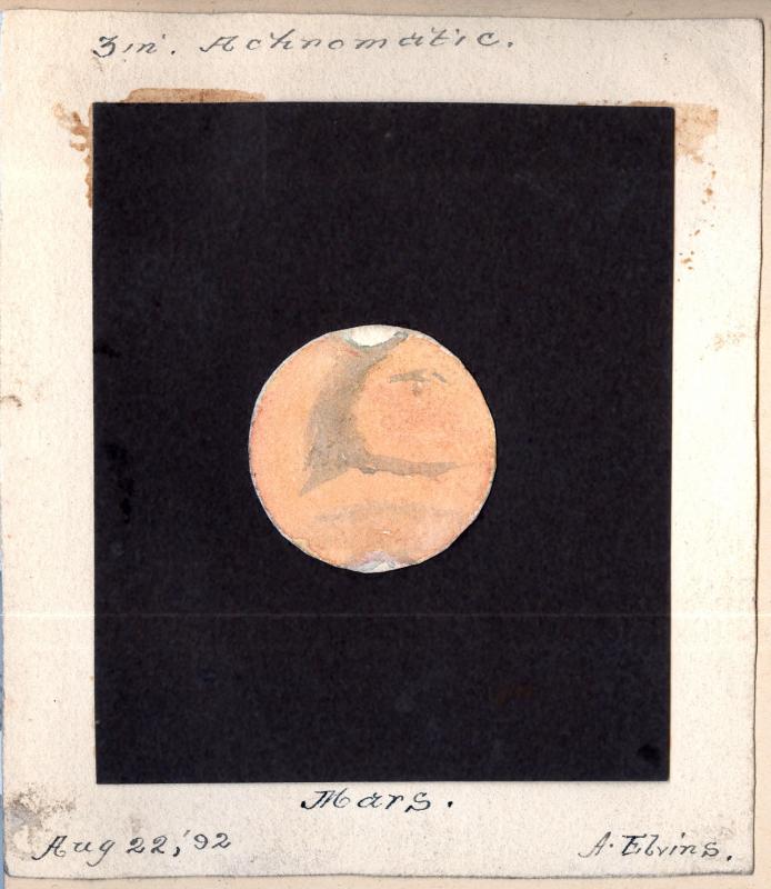 Mars, as seen on 1892 August 22 in a 3-inch achromatic telescope. Sketch by Andrew Elvins.
