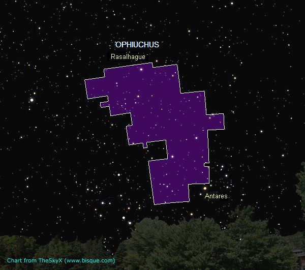 For those of us that follow the night sky, Ophiuchus – The Serpent Bearer is simply a large pattern of stars centred between Hercules to its north along with Sagittarius and Scorpius to its south. At 948 square degrees, Ophiuchus is listed eleventh largest in area and with 24 globular clusters, 17 galaxies and a handful of planetary nebulas calling the Bearer home; one can spend a lot of time searching here.