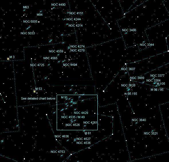 Now we come to the piece de resistance, the Virgo Cluster of galaxies. This is by far the Mecca of galactic groups. You can easily spend a couple of nights in this region. Although it is referred to as Virgo, many fine galaxies also populate Coma to the north. So where do we begin? Frankly anywhere you want. There are far too many to list in this article.