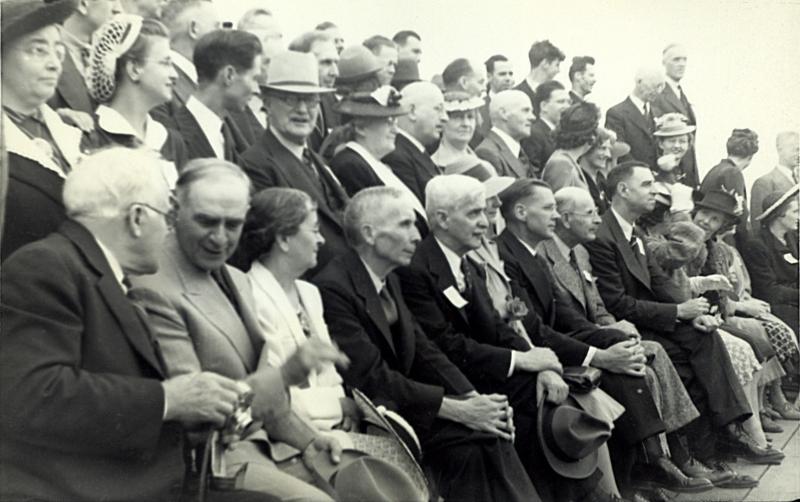 Lower row: Charles Elmer, R.K. Young, Mrs. C.A. Chant, Dr. C.A. Chant, Leon Campbell, H.S. Hogg (hat), S.C. Brown, David Pickering.