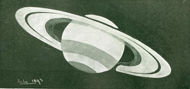 Saturn, as seen in Dr. J.J. Wadsworth’s Reflector, Simcoe Ont. in July 1895. Drawn by Miss Eva M. Brook. Published in TAPST, 1895.