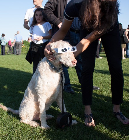 The attached is a photo of the image of the projected sun taken on our back porch at the moment which I judged to mark second contact (6:20:54 EDT). We got the family from next door to come and have a look. They were mildly interested, but the dad was much keener to show me how he could hold his iPad up to the sky and see the event on it, complete with all the surrounding constellations! I can’t vouch for the accuracy of my timing, but if anyone really wants to know how I came up with 6:20:54, I can explain.