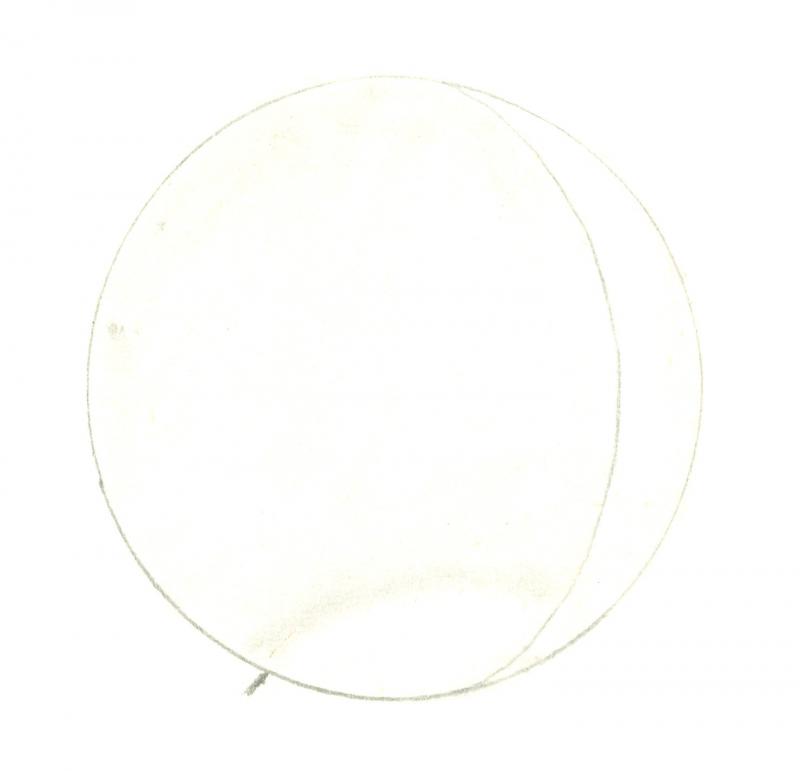 Venus on 1960 October 21/22 at 17:15-17:25 local time (21:15-21:25 UT) as sketched by K.R. Brasch. 8" reflector at 165x with a blue filter. Seeing 3-1. Transparency 3-4. Disk completely featureless except for brightness in S. polar region.