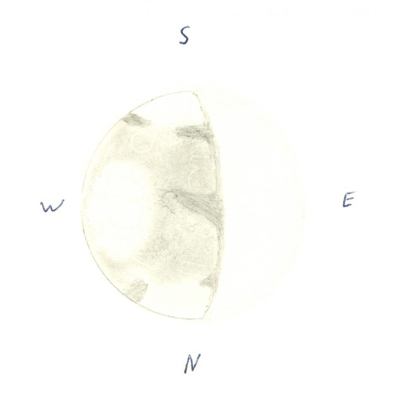 Venus on 1960 December 27 at 14:03 EST (19:03 UT) as sketched by Constantine Papacosmos. 6" refractor at 150x. Seeing 2-3. Transparency 3.